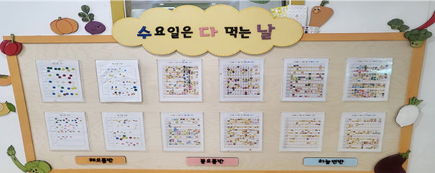 ‘수다날’이란 ‘수요일은 다 먹는 날’의 줄임말로 매주 수요일에는 유아들이 선호하며 건강한 식단으로 구성하여 골고루 먹을 수 있게 독려함으로써 잔반을 줄이고자 노력하였다. 이렇게 잔반을 줄임으로써 음식물 쓰레기 처리 비용이 절감되어 궁극적으로 환경보호를 실천하는 계기가 되었다. ‘수다날’ 운영에 따른 식사 바르미상은 1학기 동안 골고루 먹기를 실천하여 스티커를 모은 전체 유아를 대상으로 하였으며 상품으로 쿠키를 증정하였다.