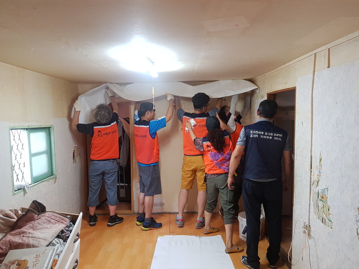 김호현 이사는 "어려운 환경의 학생 가정에게 도배 봉사 후 깨끗하게 바뀐 환경을 보니 행복과 보람을 느낀다 "고 말했다.