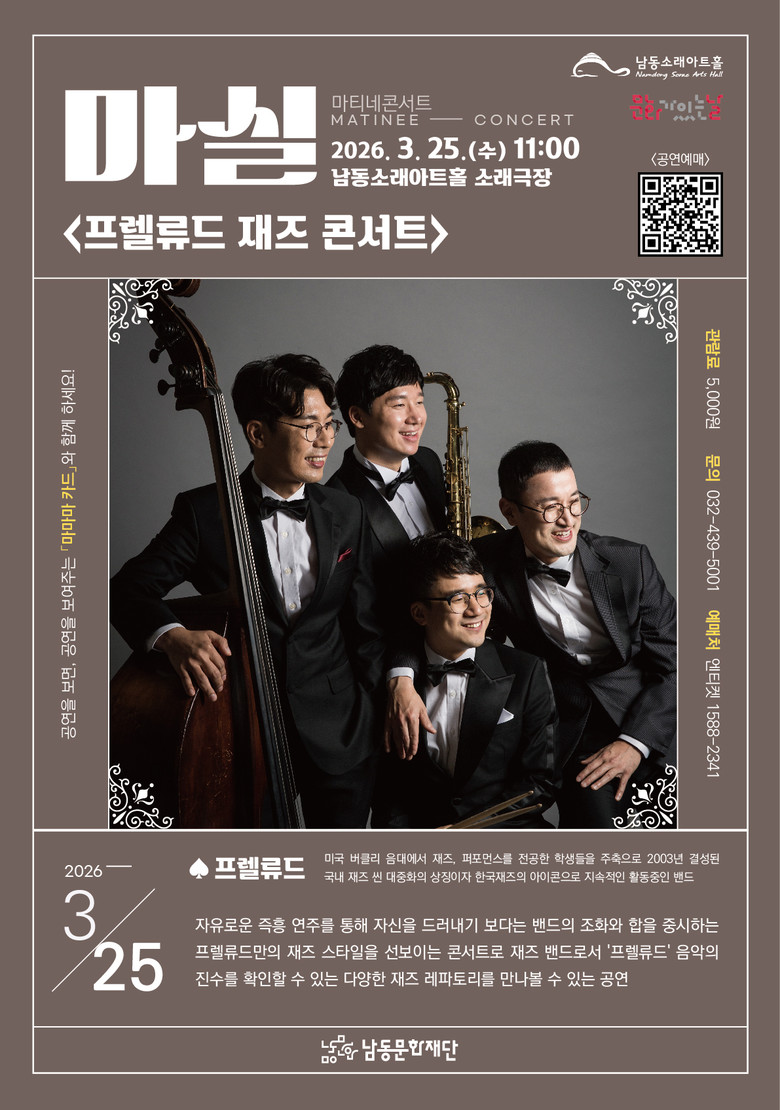 특히, 프렐류드는 개인의 화려한 즉흥 연주보다 밴드 전체의 조화와 합을 중시하는 연주 스타일로 잘 알려져 있으며, 따뜻하고 세련된 사운드로 많은 관객들의 사랑을 받고 있다. 이번 공연은 재즈 팬뿐 아니라 대중에게도 친숙한 영화 음악과 다양한 레퍼토리를 통해 재즈의 매력을 편안하게 즐길 수 있는 시간이 될 것으로 기대된다.