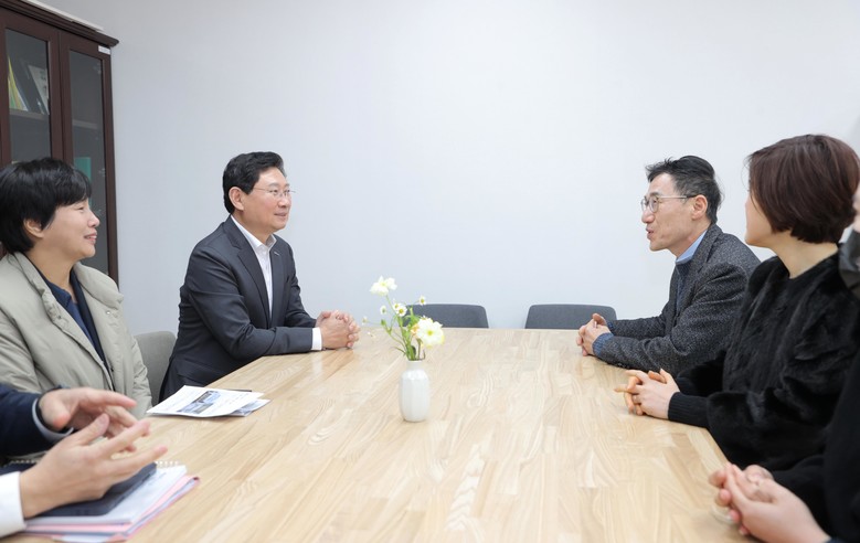 이상일 시장은 오양식 교장 등 학교 관계자와 간담회를 갖고, 농촌 지역 소규모 학교의 체육활동 공간 확보와 돌봄·통학 환경 개선 필요성 등을 논의한 뒤 체육관을 둘러봤다.