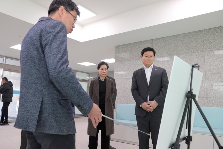 이 시장은 이어 이동읍 용천초를 방문해 준공을 앞둔 학교복합시설 ‘용천초 어울림센터’ 현장을 점검했다.