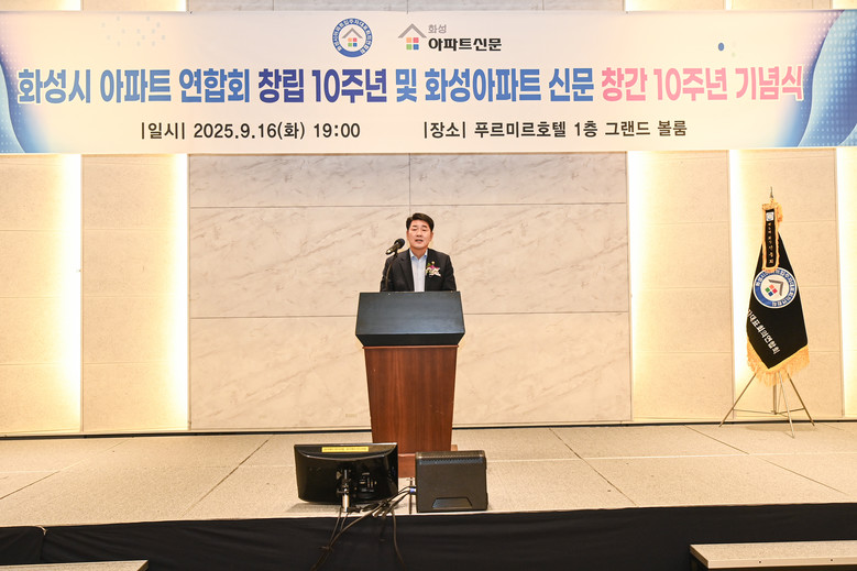 [화성시 세계타임즈=송민수 기자] 화성특례시의회(의장 배정수)는 16일, 푸르미르호텔 그랜드 볼룸홀에서 열린 ‘화성시아파트연합회 창단 10주년 및 화성아파트신문 창간 10주년 기념식’에 참석해 아파트 공동체 문화 발전과 건강한 주거 문화를 응원했다.