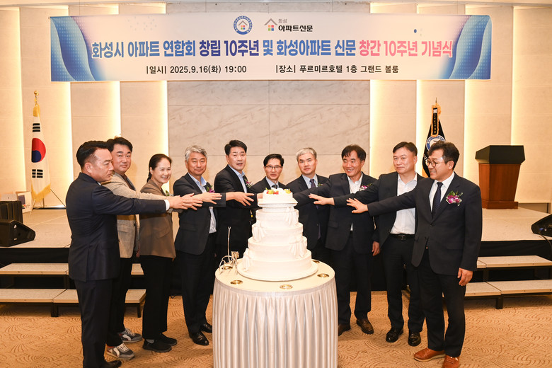 이날 기념식에는 배정수 의장을 비롯해 장철규 기획행정위원장, 임채덕 경제환경위원장, 김미영 의원이 참석했고, 화성시아파트 입주자대표회의 연합회 및 화성아파트신문 관계자와 주민 등 약 100명이 함께해 10년의 성과를 축하하고 미래 비전을 다졌다.