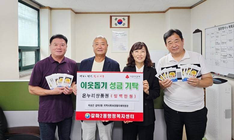 [서구 세계타임즈=이채봉 기자] 대전 서구(구청장 서철모) 갈마2동 행정복지센터는 박상근 갈마2동 지역사회보장협의체 위원장이 온누리상품권 100만 원을 기탁했다고 25일 전했다.