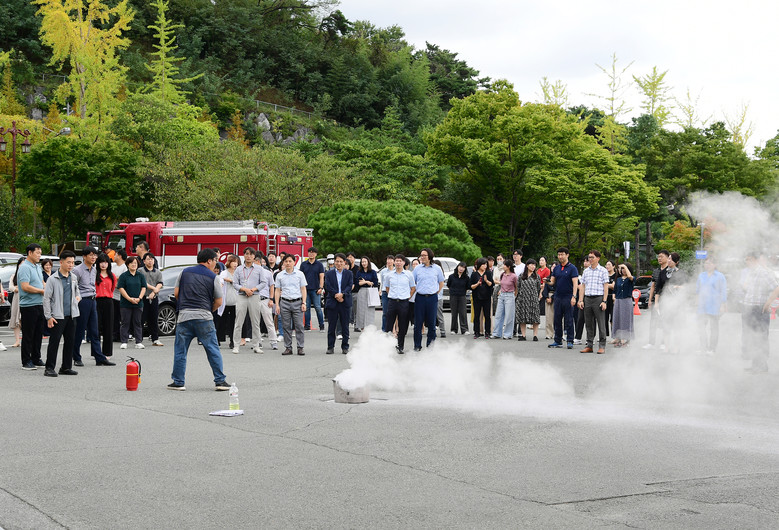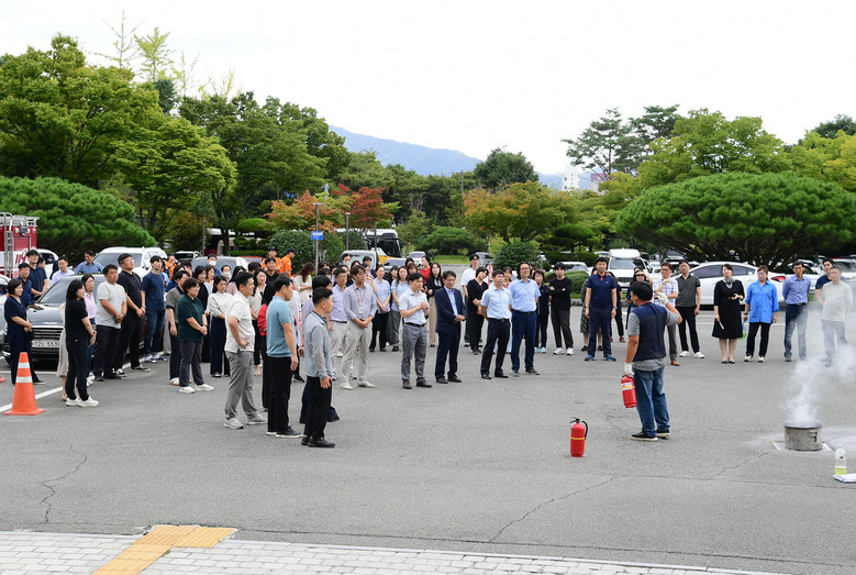 의회청사 광장에는 미리 소방차와 소방관들이 대기하고 있었다. 도의원과 직원들이 모두 대피한 후 소방안전관리자가 소화기 및 옥내소화전 사용법을 자세하게 안내하고 시범을 보였다. 또한 직원들이 소화기 및 소화전 사용 방법 등 화재 예방 방법을 안전하게 익힐 수 있도록 하였다.