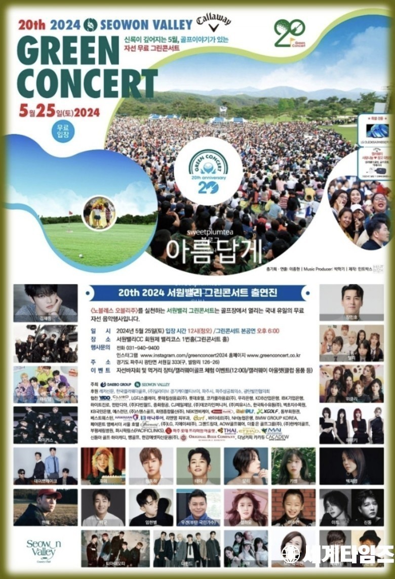 서원밸리CC는 골프장 최성수기인 5월 마지막주 토요일 코스를 무료 개방해 낮에는 지역 주민을 위한 다양한 이벤트와 축제를, 오후에는 화려한 콘서트를 연다. 이번 콘서트에 4만2500명이 와 누적 관람객은 57만2850명, 누적 자선기금은 6억8540만원이 됐다. 역대 출연진도 화려하다. 인기가수'방탄소년단'도 그린콘서트 무대에 오른 경력이 있다.