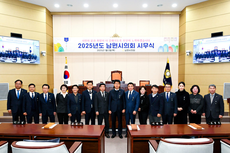 [남원시=세계타임즈 신승민 기자] 남원시의회(의장 김영태)가 2일 을사년 새해를 맞아 남원시의회 본회의장에서 2025년도 시무식을 개최했다.