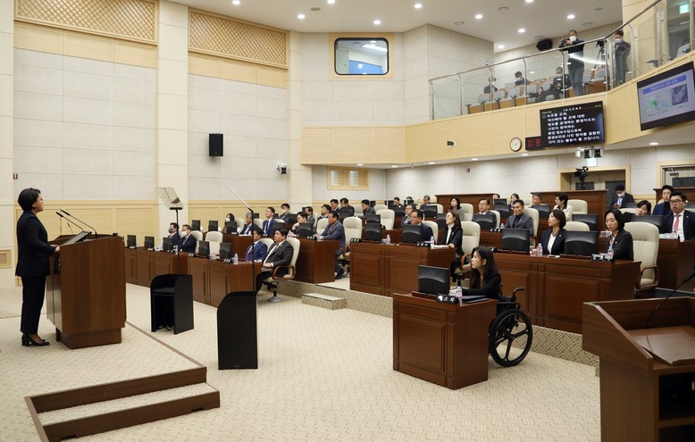 마지막 발언자로 나선 여미전 의원은 지역주민과 충분한 소통없이 추진되고 있는 친환경종합타운 사업방식에 유감을 표하며 더욱 적극적이고 끊임없는 주민 설득과 소통의 노력을 주문했다.
