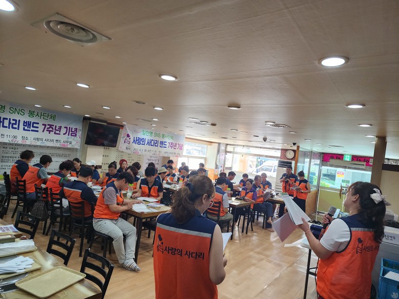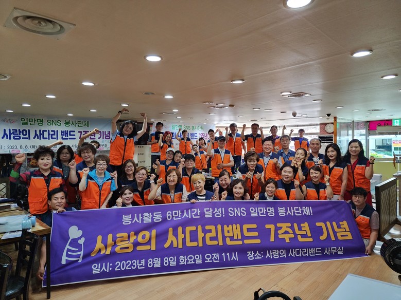 [대전 세계타임즈=이채봉 기자] 1만 명 회원이 가입돼 있는 봉사단체 사랑의 사다리 밴드(리더 이정제)가 8월 8일로 창립 7주년을 맞았다.