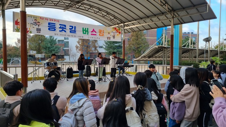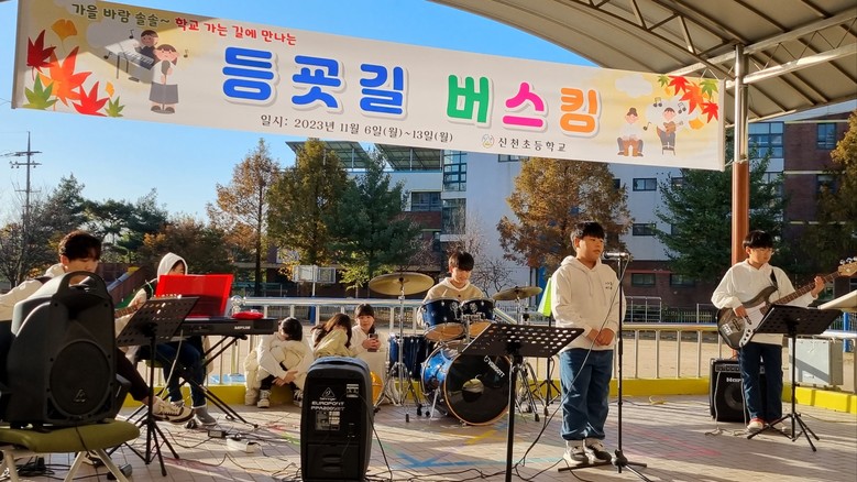 [시흥시 세계타임즈=송민수 기자] 2023.11.06.(월)~11.13.(월) 6일 동안 신천초등학교에서는 자율적 으로 참가 신청을 한 학생들이 열심히 준비하여 펼친 밴드부 공연, 방송댄스, 악기 연주, 노래 버스킹 공연으로 더 즐거운 등굣길이 만들어졌다.
