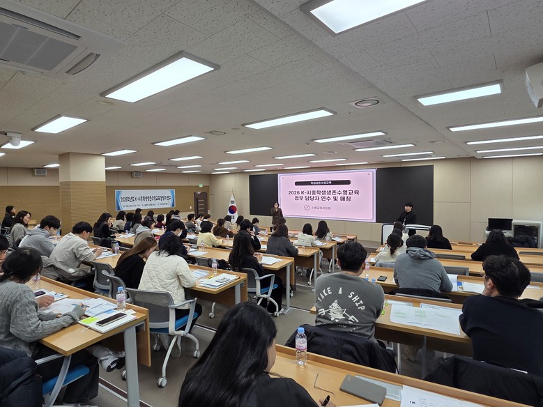 [시흥시 세계타임즈=송민수 기자] 경기도시흥교육지원청(교육장 채열희)은 2월 25일(수) 서울대학교 시흥캠퍼스 806호에서 관내 초등학교 담당교사와 수영장 관계자 등 약 80여 명이 참석한 가운데 ‘2026학년도 시흥 학생생존수영교육 활성화 담당자 협의회 및 위탁수영장 매칭’을 개최했다.