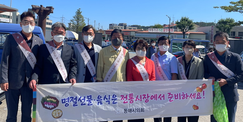 [동해시 세계타임즈=김민석 기자] 동해시의회(의장 이동호)는 7일(월)~8일(화) 동쪽바다중앙시장과 북평민속시장을 방문하여 코로나19로 위축된 전통시장 활성화를 위해 명절맞이 장보기 행사를 진행했다.