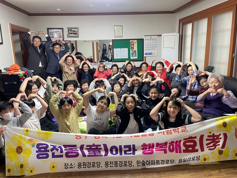[대전 세계타임즈=이채봉 기자] 대전용전초등학교(교장 이중재)는 동구 행복이음 교육지구 마을결합 시범학교에 선정되어 그 사업 일환으로 5월 7일(화), ‘용전동(童)이라 행복해효(孝)~’행사를 실시하였다.
