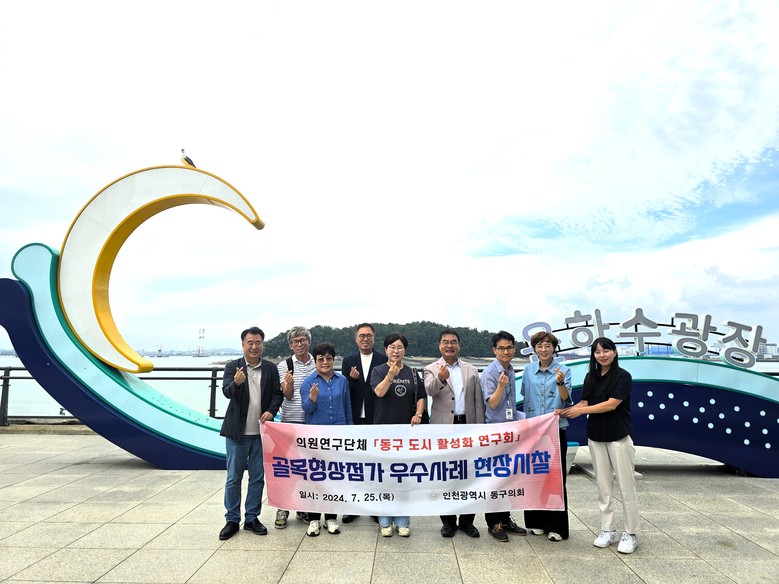[동구 세계타임즈=심하린 기자] 인천 동구의회 의원연구단체 『동구 도시 활성화 연구회(대표의원 장수진)』는 지난 7월 25일 중구 영종도 구읍뱃터 일원에 위치한 은하수길 골목형상점가를 시찰하였다. 이번 시찰은 동구 도시 활성화 및 상권 발전을 위한 벤치마킹의 일환으로 진행되었다.