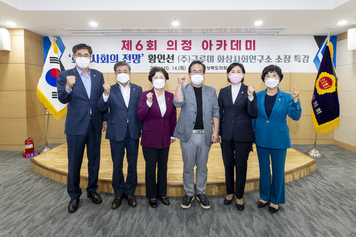 [경북=세계타임즈 한성국 기자] 의정역량 강화를 위해 경상북도의회가 개설한 ‘2021 의정 아카데미’여섯 번째 특강이 10월 14일(목) 제326회 임시회 폐회 후 도의회 세미나실에서 ‘화상사회의 전망’ 이라는 주제로 실시됐다.