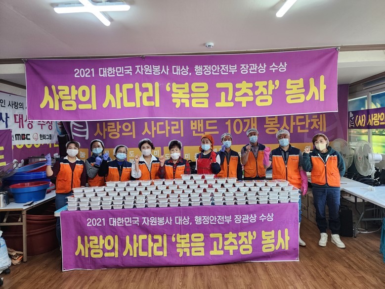 [대전 세계타임즈=이채봉 기자] 대전광역시 SNS 일만명 봉사단체 사랑의 사다리 밴드(리더 이정제)는 20일 오전9시~오후12시에 대덕구 중리동에 위치한 사랑의 사다리 밴드 사무실에서 볶음고추장을 만들어서 서구지역아동센터에 100개를 전달하였다.