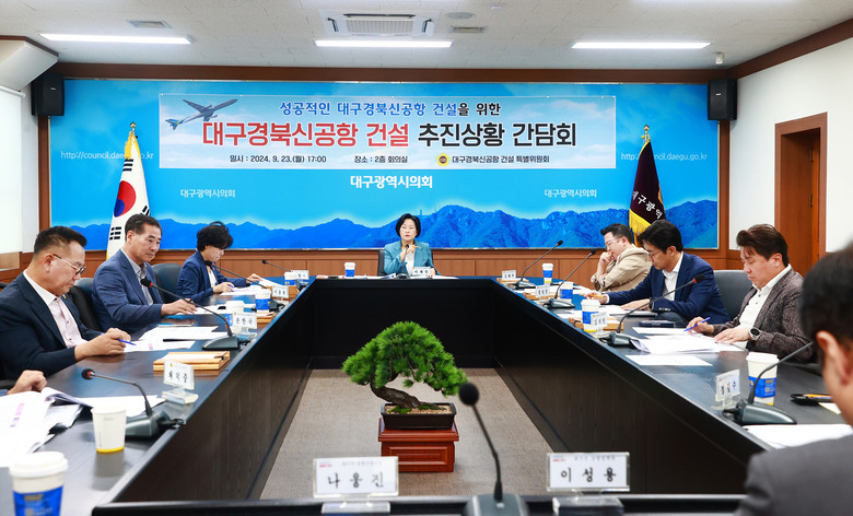 이날 간담회에서 위원들은 나웅진 대구시 공항건설단장으로부터 신공항 건설과 관련된 최신 현황을 보고받고, 특별법 개정과 신공항 건설 사업 진행 방식 등을 주제로 심도 있는 논의를 진행했다.