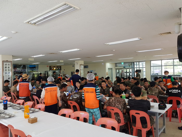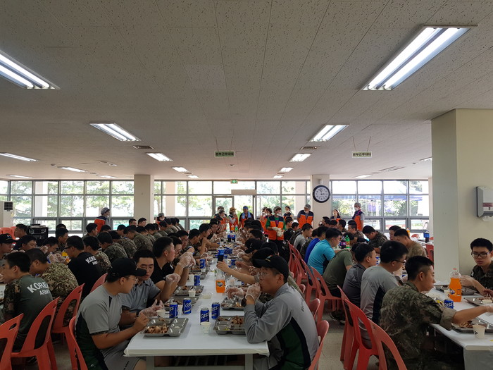 신상일 통닭 봉사 단장은 “나라를 위해 애쓰시는 군장병들이 바비큐 통닭을 맛있게 드시는 모습에서 행복과 보람을 느낀다.“고 말했다.