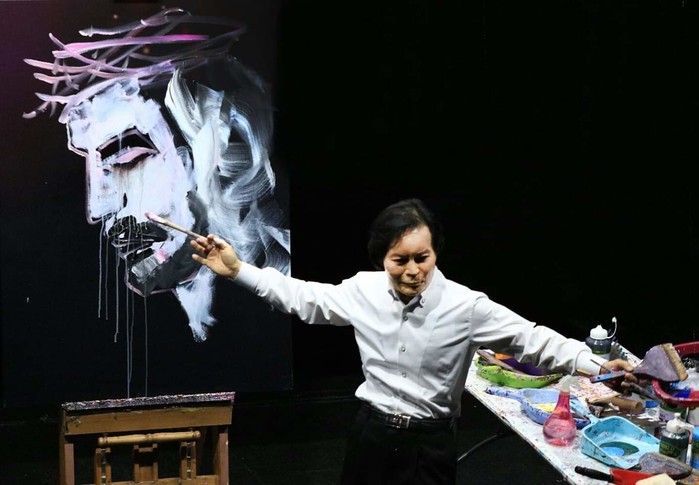 [사진 설명] 인사아트홀 예수님 눈물 퍼포먼스하는 신현호 화백.