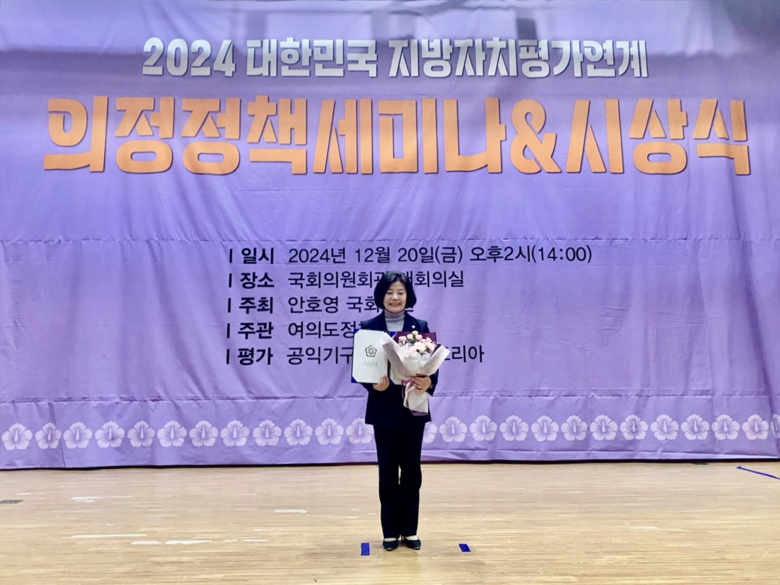 - 활발한 입법 활동과 지역 주민 삶의 질 향상 기여도 인정 받아