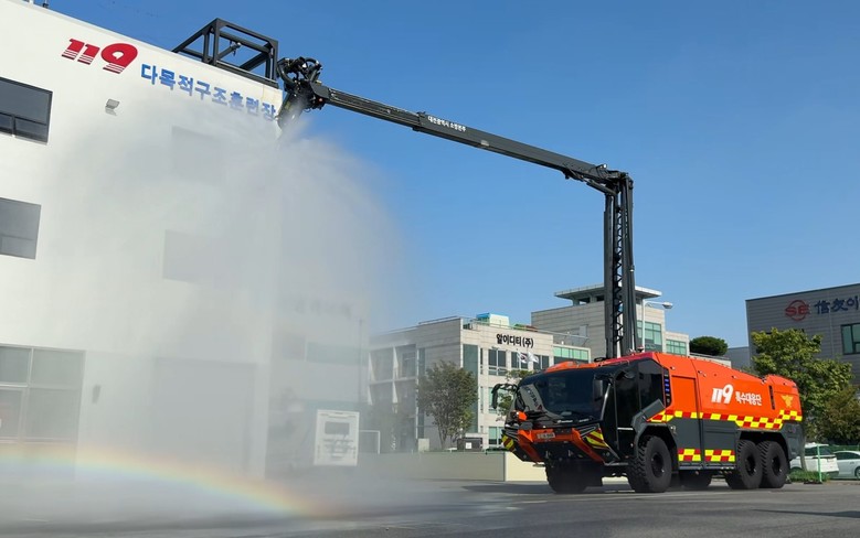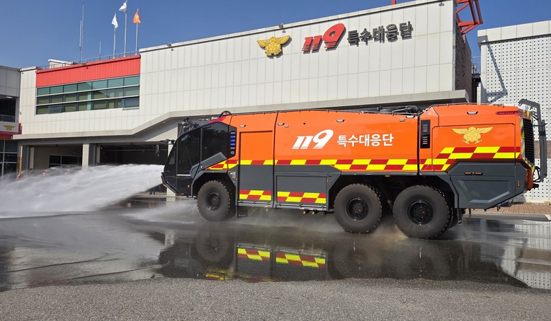 이번에 도입된 차량은 오스트리아 본사에서 제작·납품된 모델로, 물탱크 1만 2천ℓ와 폼탱크 1,200ℓ를 탑재했다. 전자동·주행 중 방수 기능, 굴절붐, 열화상카메라 등 첨단 장비가 장착돼 고위험 화재 현장에서 최적의 진압 효과를 발휘할 수 있다.