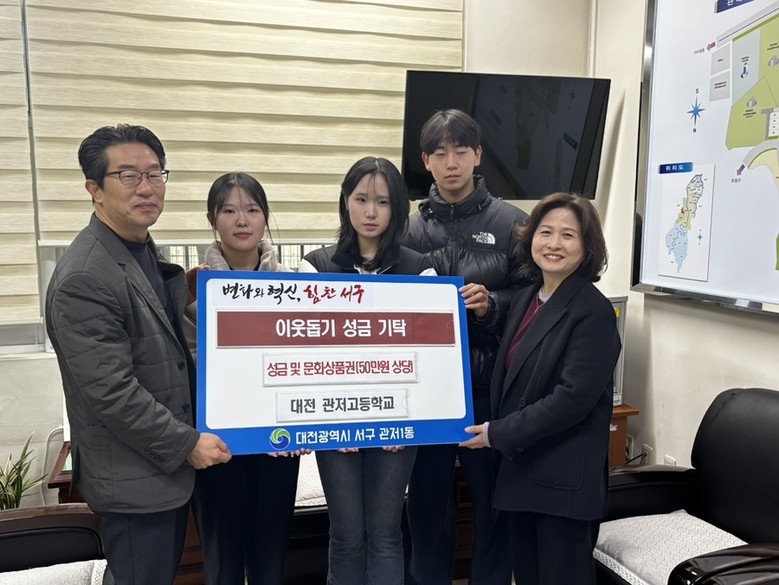 박성남 관저1동장은 “학생들이 주도적으로 나눔에 참여해 준 점이 더욱 뜻깊다”며 “정성이 담긴 성금과 상품권이 도움이 필요한 이웃들에게 잘 전달되도록 하겠다”고 말했다.