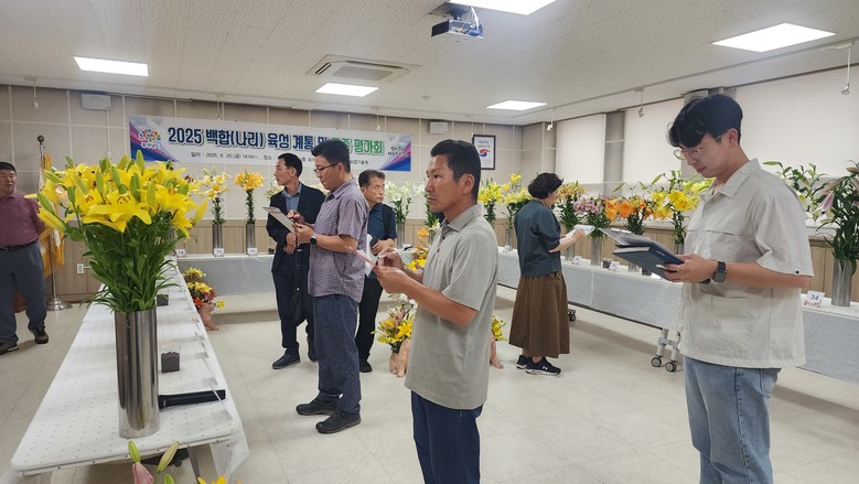 평가는 한국백합생산자중앙연합회, 충남백합연구회, 종묘업체, 관련 전문가 등 40여 명으로 구성된 심사위원단이 △화색 △초형 △생육 특성 △소비자 기호도 등을 종합적으로 살폈다.