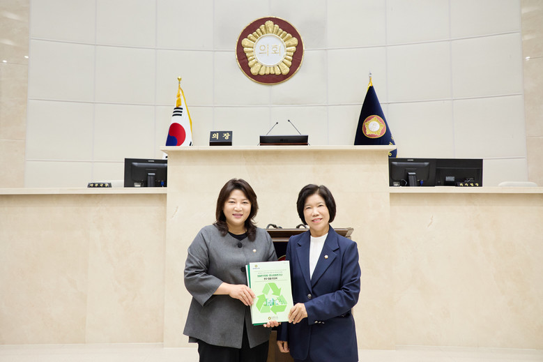 [용인시 세계타임즈=송민수 기자] 용인특례시의회 의원연구단체 탄소중립연구소Ⅲ(대표 박희정 의원)은 29일 의장실에서 영등포구의회 의원연구단체 ‘탄소중립과 지속가능한 문화도시 연구회’와 간담회를 열고 탄소중립 관련 정책연구 성과와 우수사례를 공유했다.
