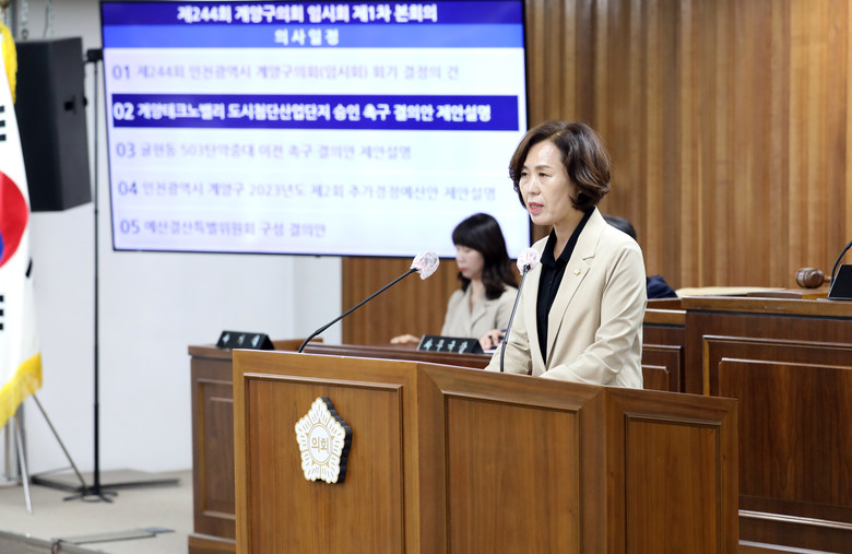 [계양구 세계타임즈=심하린 기자] 인천 계양구의회(조양희 의장)는 4일 제244회 임시회 제1차 본회의에서 대표 발의한 문미혜 의원의 “계양테크노밸리 도시첨단산업단지 승인 촉구 결의안“이 의원 만장일치로 채택됐다.