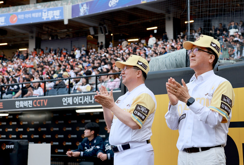 [대전 세계타임즈=이채봉 기자] 조원휘 대전시의회 의장과 이장우 대전시장이 7일 대전 한화생명 볼파크에서 열린 한화와 삼성 경기에 앞서 각각 시타와 시구를 선보이며 새 야구장 개장을 축하했다.