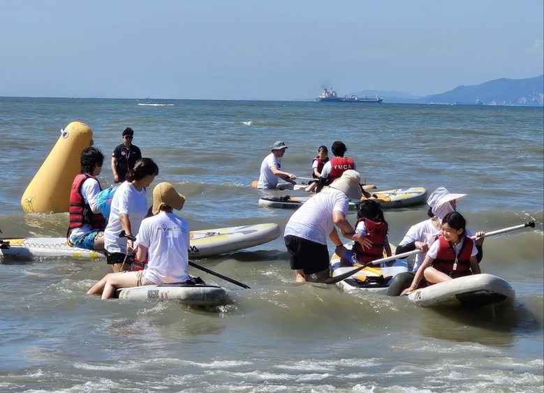 캠프 첫 날에 참가자들은 봉사자와 아동청소년들을 멘토 & 멘티로 매칭하여 서로 인사를 나눈 후 20여 명씩 조별로 나누어 물총놀이, SUP 지상교육 생존수영강습 후 패들보드해상 체험을 하였고 참여한 양육자(어머니)들은 육아를 벗어나 자유롭게 미용아트(네일, 메이크업, 헤어)체험, 재미로 보는 타로, 체질 식단 컨설팅을 체험하였다.