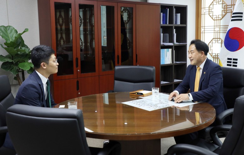 [세종 세계타임즈=이채봉 기자] 세종특별자치시의회 상병헌 의장은 지난 31일 집무실에서 권동철 세종세무서장과 만나 환담을 나눴다.