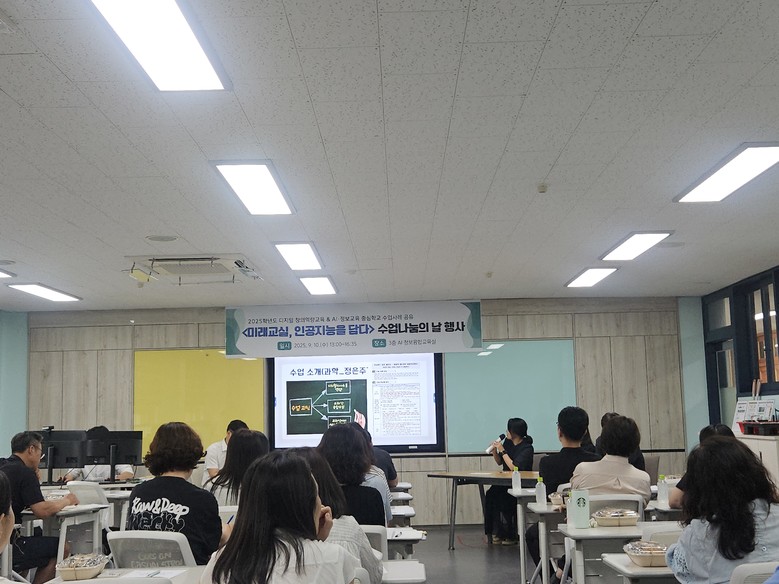 수업 공개 이후에는 ‘디지털·AI 수업 토크쇼’가 이어졌는데 교사와 참관자가 자유롭고 편안한 분위기 속에서 수업 경험과 고민을 공유하며 진행되었다. 형식적인 발표가 아닌, 실제 수업 현장에서 느낀 어려움과 성과를 나누는 대화의 장으로 꾸며져 참석자들로부터 큰 호응을 얻었다.