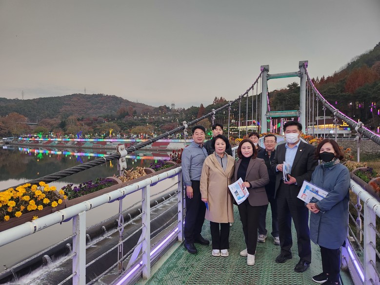 이번 견학은 타 지역의 경관조명과 조형물, 산책로, 수변 무대, 잔디광장 등에 대한 성공사례 벤치마킹으로 우리 시의 특색을 살려 관광시설에 반영하기 위한 것이다.