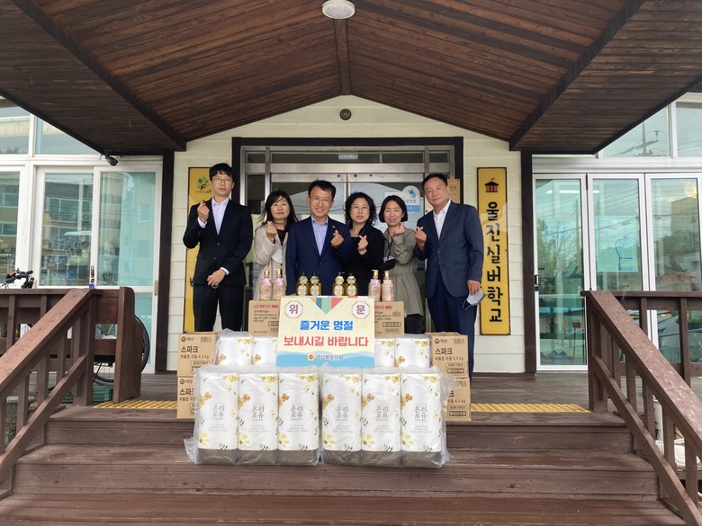 [경북 세계타임즈=한성국 기자] 경북도의회 김원석 도의원(울진)은 추석을 맞아 어려운 이웃과 함께하는 따뜻한 지역사회를 만들기 위해 9월 5일(월) 울진군 죽변면 소재『울진실버학교』, 후포면 소재『영신해밀홈』을 도의회를 대표해어려운 이웃과 함께 훈훈한 정을 나누는 자리를 가졌다.