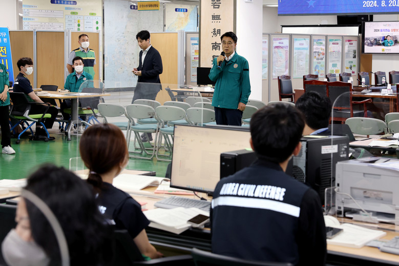 이날 김태균 의장은 권성조 비상대책민방위팀장으로부터 전시종합사항에 대해 보고를 받고 근무자들에게 “국가 비상 상황시에 소통과 협력으로 완벽한 지역 통합 태세가 잘 유지 될 수 있도록 최선을 다 해 줄 것”을 당부했다.