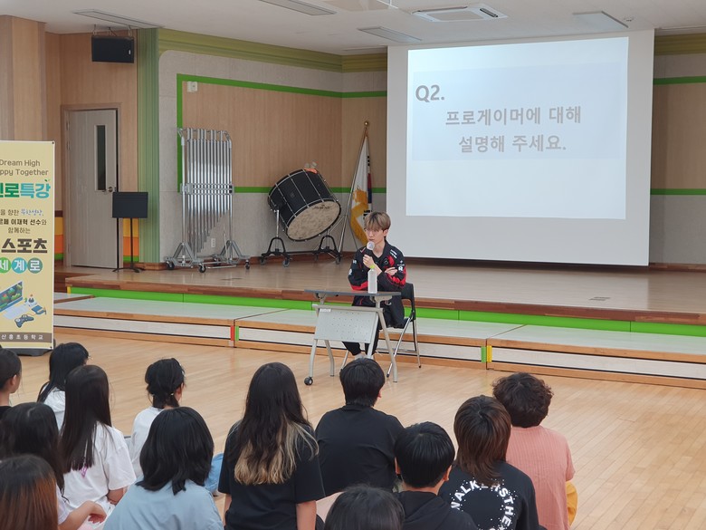 [대전 세계타임즈=이채봉 기자] 산흥초등학교(교장 원정애)는 3~6학년 학생을 대상으로 프로게이머 ‘카르페’ 이재혁 선수 초청 Dream High! Happy Together! 진로 특강을 실시했다고 2일(월) 밝혔다.