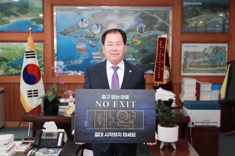 [부안군 세계타임즈 = 강옥선 기자] 부안군의회 김광수 의장이 지난 16일 마약류 범죄의 예방과 척결을 위한 경각심 제고를 위하여 마약범죄 예방 릴레이 캠페인‘NO EIXT’에 동참했다.