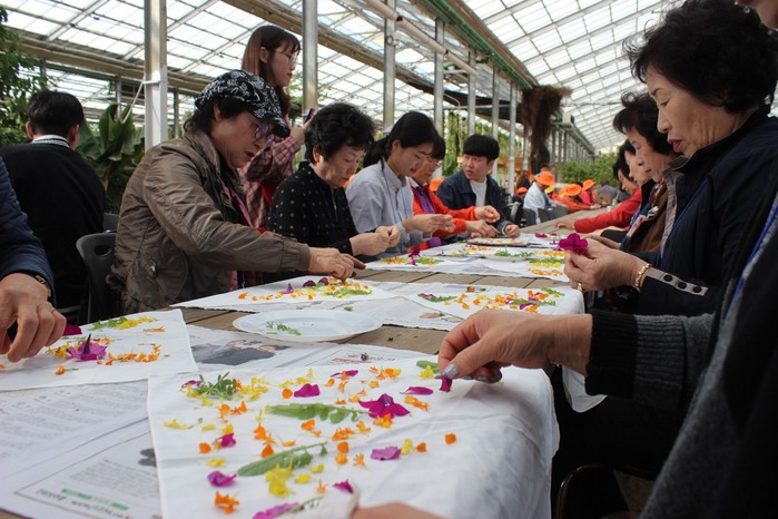 프로그램에 참여하는 17명의 어르신들과 함께 도고면에 위치한 세계꽃식물원에 방문하여 오감을 활용한 꽃 손수건만들기 체험과 식물원 곳곳을 거닐며 꽃과 식물을 감상하였다.