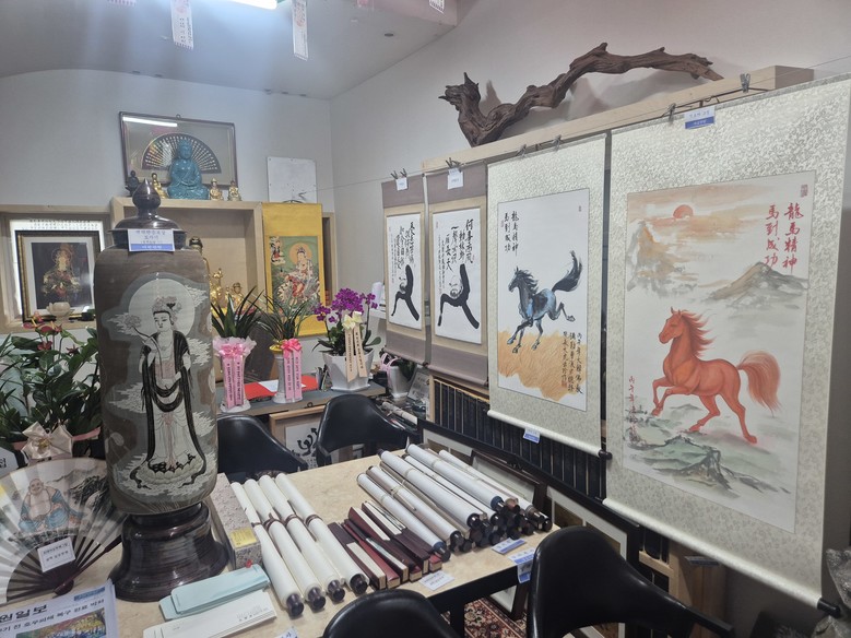 이번 전시는 2026년 병오년 붉은 말띠의 해를 맞이해 국민들의 화합과 평화와 건강한 삶을 기원하는 의미를 세깅다는 스님만의 독특한 색채를 직접 제조한 물감으로 표현해 오직 붓으로 한 점 한 점 혼을 담은 작품들을 선 보였다.