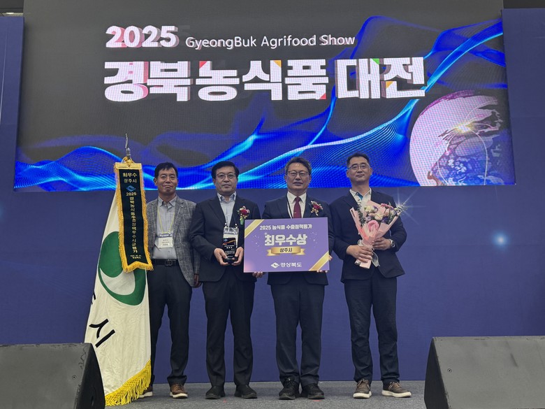 [상주시 세계타임즈=한윤석 기자] 상주시는 6월 5일(목) 경상북도에서 개최한 「2025년 농식품 수출정책 우수 시·군 평가」 시상식에서 “최우수상”을 수상하여 시상금 5백만원과 상사업비 3천만원을 받았다. 이번 평가는 경상북도 22개 시·군을 대상으로 ‘농식품 수출실적, 증감률, 신시장개척 등 수출 확대를 위한 자치단체의 노력과 관심도’를 반영하여 진행되었다.