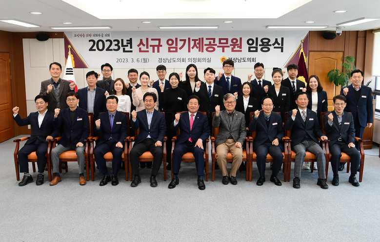 [경남 세계타임즈=최성룡 기자] 경상남도의회 김진부 의장은 의정 정책지원 강화를 위해 6일 의정회의실에서 정책지원관 11명 등 신규 임기제공무원 13명에 대한 임용장을 수여하였다