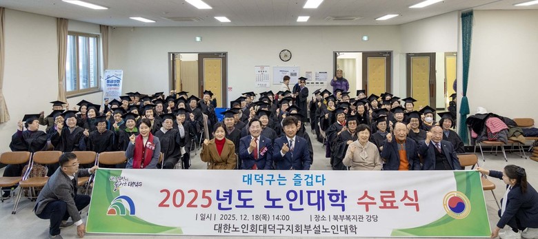 [대덕구 세계타임즈=이채봉 기자] 대전 대덕구(구청장 최충규)는 18일 대한노인회 대덕구지회에서 ‘2025년 노인대학 수료식’을 열고, 교육과정을 이수한 어르신 80명을 축하했다.