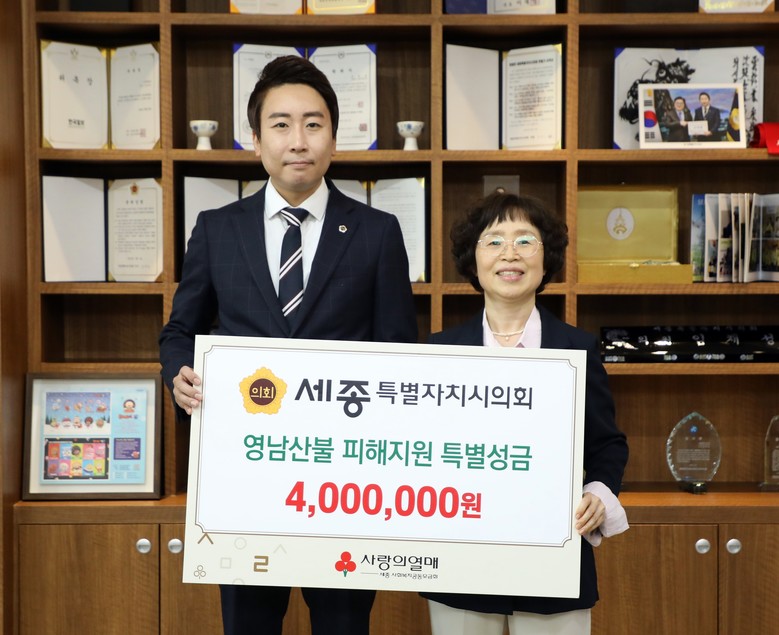 임 의장은 "작은 정성이지만 피해 지역 주민들에게 실질적인 도움이 되기를 바란다"며, "세종시의회는 앞으로도 각종 재난 및 위기 상황 속에서 사회적 책임을 다하고 지역사회 안전망 강화를 위해 최선을 다하겠다"고 밝혔다.