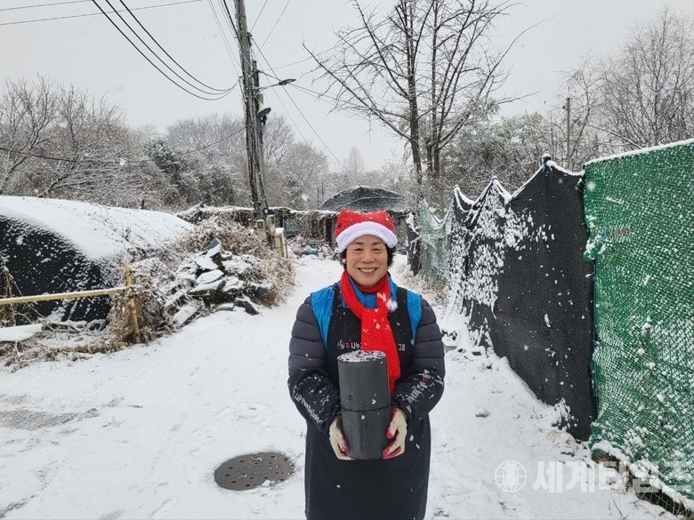 [세계타임즈 = 이진화 기자] 나누고 베풀 봉사하는 그룹(회장 한옥순)은 경기도 하남시 초이동 개미촌에서 시연탄 1천장을 5가구 어려운 세대에게 30일 오전 전달했다고 밝혔다/ .