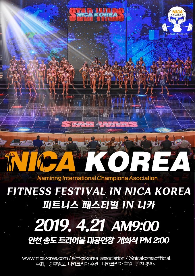 NICAKOREA는 "대한민국 모든 기업체와 피트니스 선수들 간의 상호 보완적인 마케팅을 통해 각자의 브랜드를 컨텐츠화 시켜 프로모션 하는 대한민국 최초 글로벌 협회이다. 이번 2019년 피트니스 페스티발 IN 니카는 인천광역시의 공식후원과 중부일보와의 공동 개최로 선수들에게 다양한 혜택과 글로벌 대회로써 위상을 높혔다.