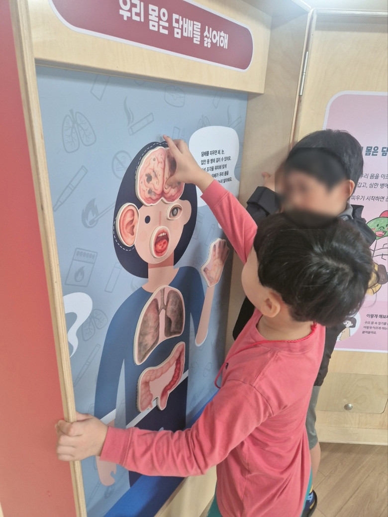 체험관은 ‘띵동! 노담박스 5종’을 주제로 ▲아픈 폐와 건강한 폐 비교체험 ▲‘우리 몸은 담배를 싫어해’학습코너 ▲‘노담밴드 친구들의 건강한 하루’동화 시청 ▲건강 블록 맞추기, 퍼즐놀이 등 놀이 중심의 활동을 통해 아이들이 흡연의 해로움을 자연스럽게 인식하도록 돕는다.