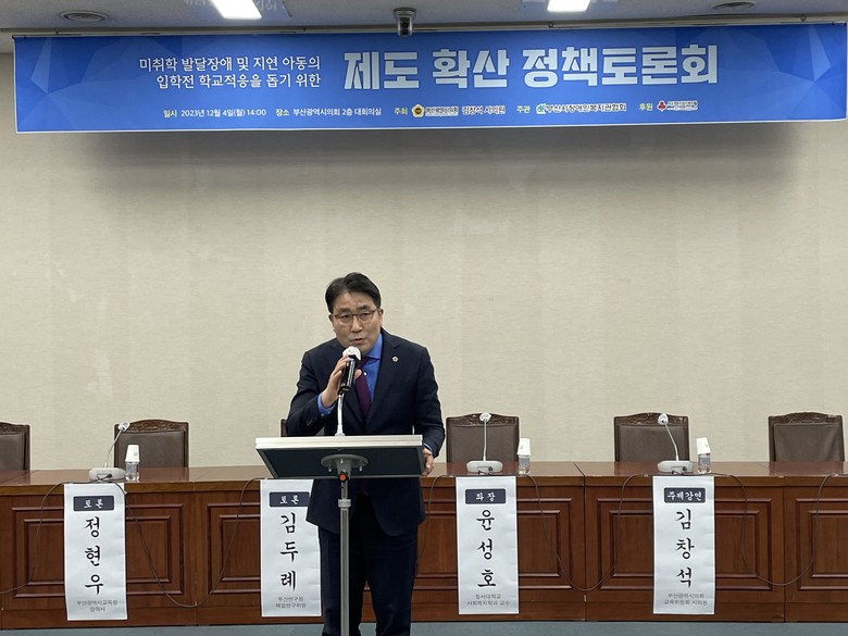 [부산 세계타임즈=이용우 기자] 부산광역시의회 교육위원회 김창석 의원(국민의힘, 사상구2)이 주최하고 부산시장애인복지관협회가 주관하는 “미취학 발달장애ㆍ지연 아동의 입학 전 학교적응을 돕기 위한 제도 확산 정책토론회”가 12월 4일, 오후 2시 부산시의회 대회의실(2층)에서 개최되었다.