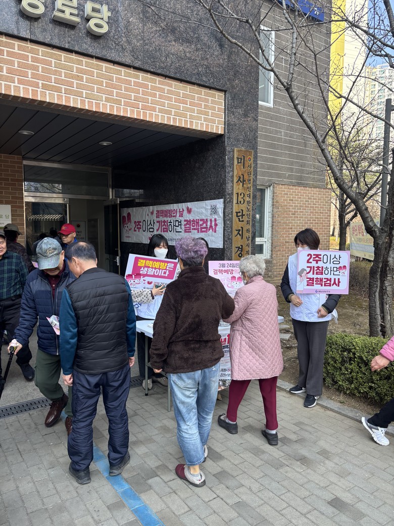 이번 캠페인은 3월 23일 미사강변13단지 아파트 경로당에서 대한결핵협회와 연계한 찾아가는 결핵 검진과 함께 진행됐으며, 약 200여 명이 참여해 큰 호응을 얻었다. 특히 고령층의 참여율이 높아 결핵 고위험군의 조기검진 필요성을 환기시키는 계기가 됐다.