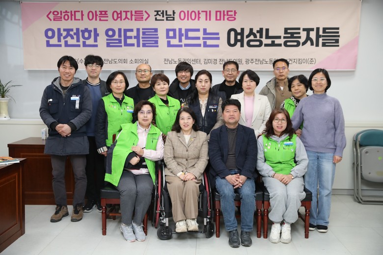 [전남 세계타임즈=우덕현 기자] 전남도의회 김미경 의원(녹색정의당, 비례)은 지난 3월 6일 전남도의회 소회의실에서 열린 ‘<일하다 아픈 여자들> 전남 이야기 마당’에 참석해 여성 노동자들의 노동환경에 대한 문제점을 공유하고 해결책을 논의했다.